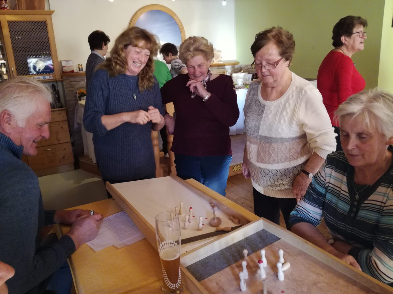 Zu einem lustigen Kegelnachmittag trafen sich die Mitglieder im Gasthof Trattner. Statt mit einer Kugel mussten die Kegel mit dem „damischen Hansl“ umgeschoben werden.