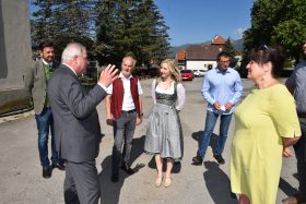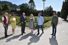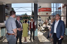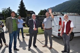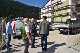 Die Großbaustelle für unser neues Schulzentrum war dem Landeshauptmann in der letzten Woche einen Besuch wert. Gemeinsam mit Bezirksobfrau und Landtagspräsidentin Manuela Khom ließ er sich von unserm Bürgermeister Herbert Göglburger und dem zuständigen Bautechniker über den Baufortschritt informieren. Für die vielen zusätzlich angefallenen Kosten z.B durch die bautechnisch momentan notwendig gewordene zusätzliche Sanierung des Turnsaaldaches, sicherte er eine zusätzliche finanzielle Unterstützung durch das Land zu.