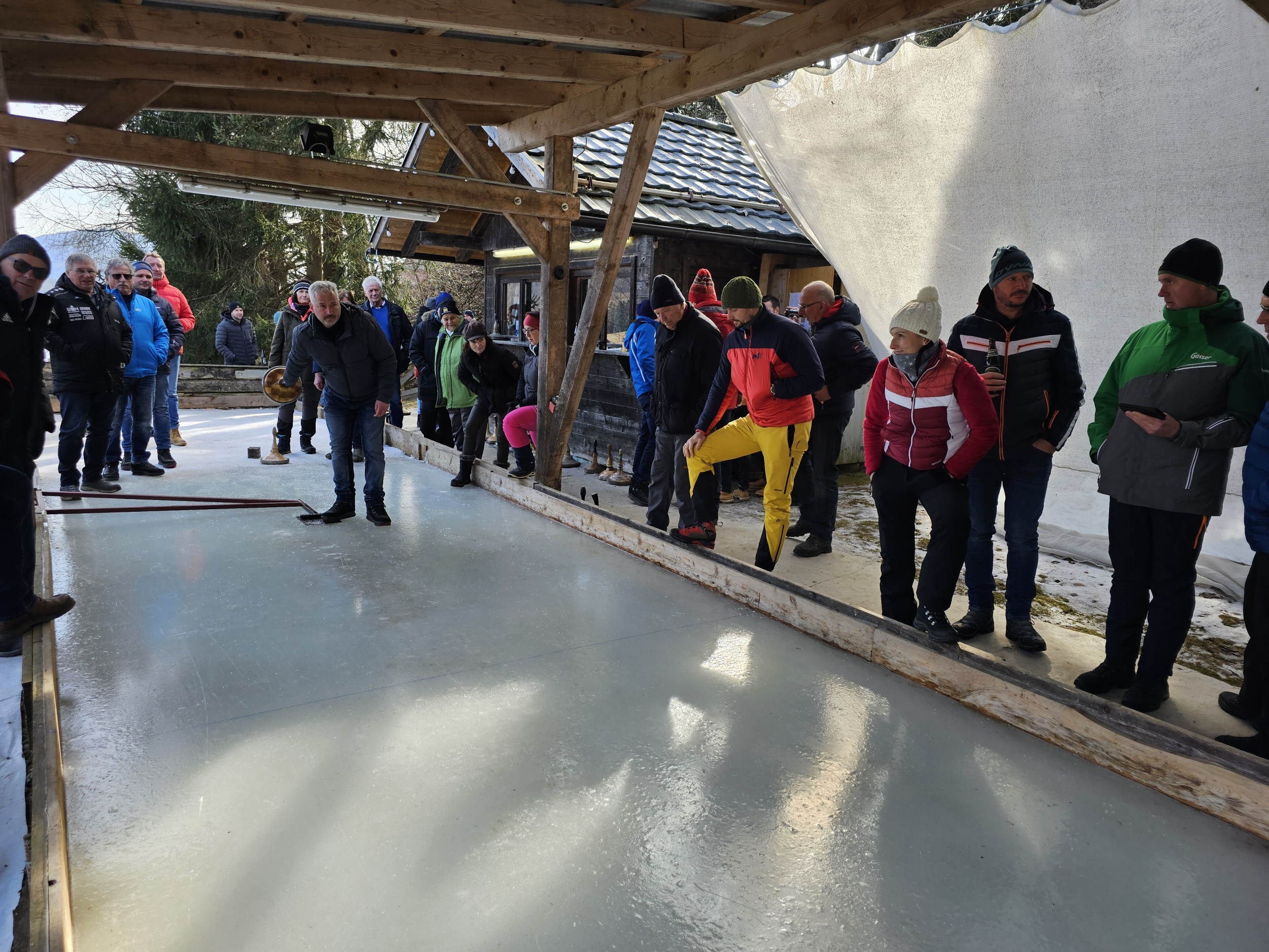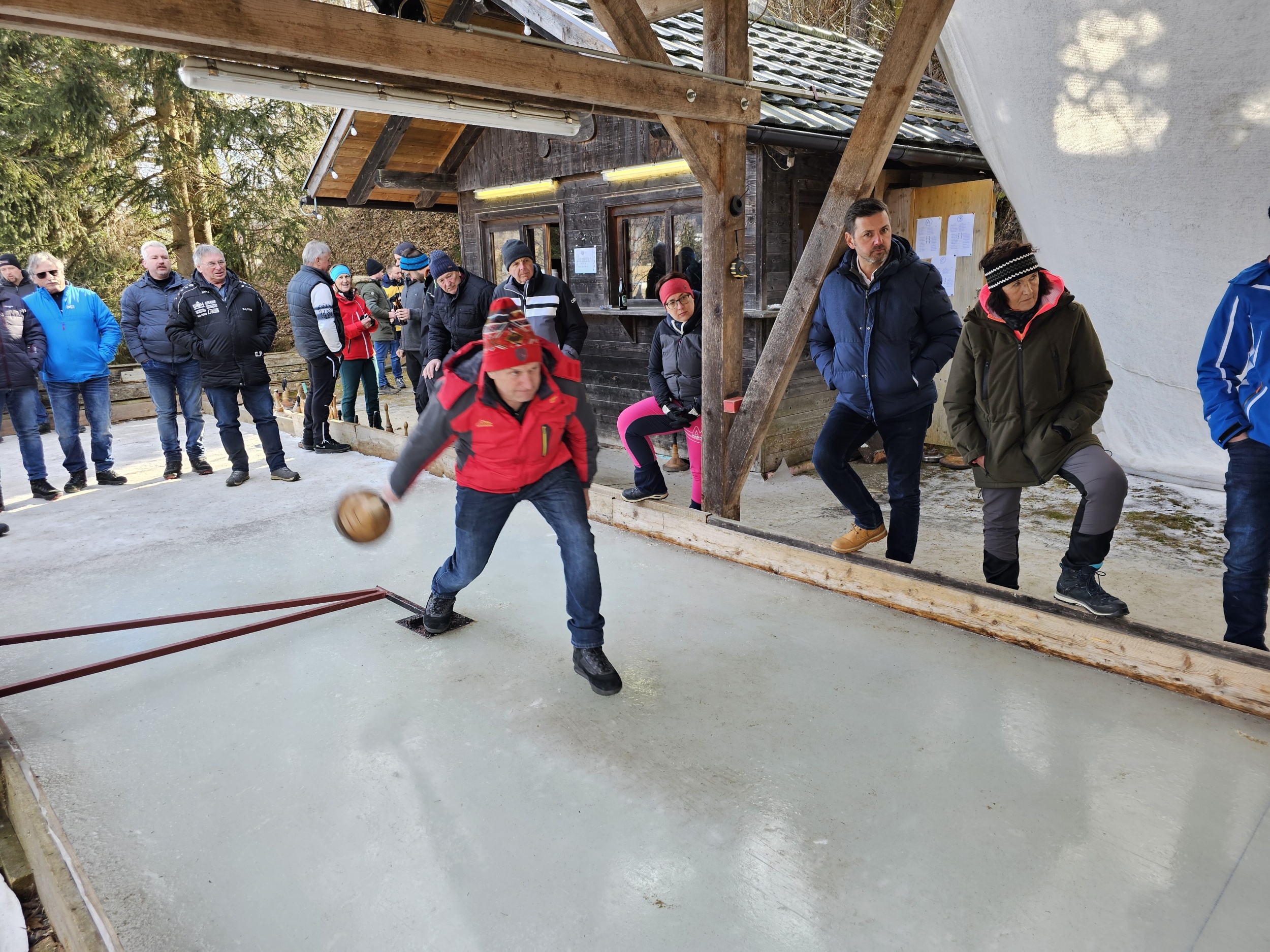 Das Pöllauer Moarschaftseisschießen auf der Eisbahn beim Berghof Prieler fand am Sonntag, 9. Februar 2025 statt.